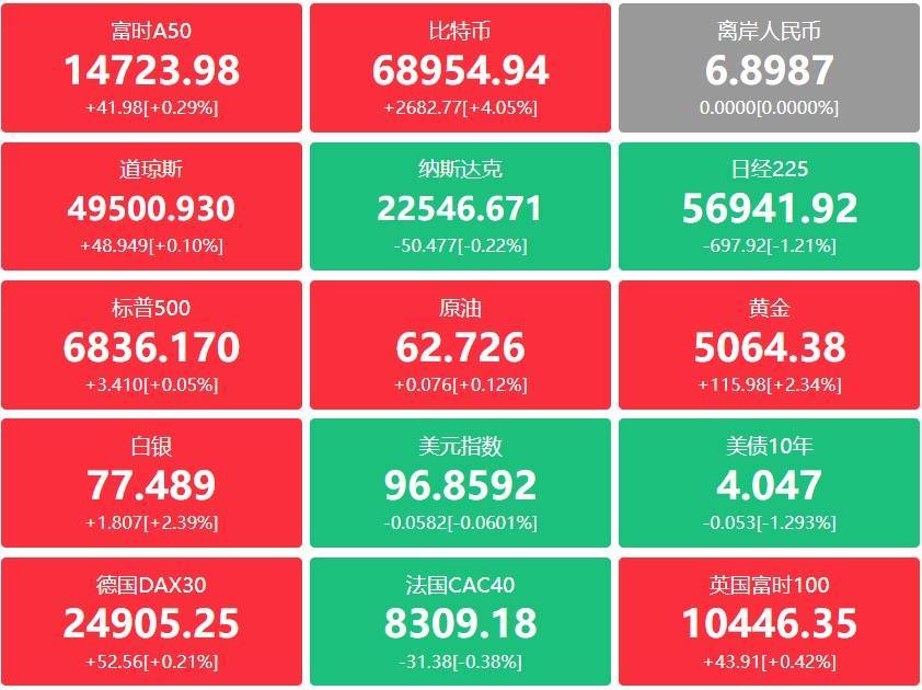 好意思国三大股指收盘涨跌不一,谈指涨0.1%报49500.93点,标普500指数涨0.05%报6836.17点,纳指跌0.22%报22546.67点。本周,谈指跌1.23%,标普500指数跌1.39%,纳指跌2.1%。